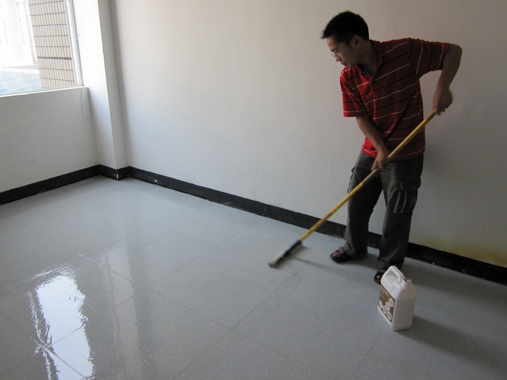 3.待地板徹底干透后,防靜電地板蠟水均勻涂于地面,使地面充分吸收并成膜,以達到封地效果.