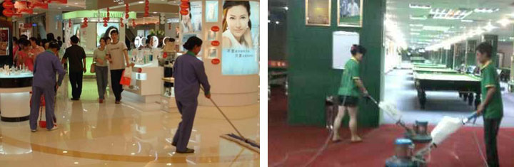 政府機關大樓 商務廣場大廈 購物商場超市 學校醫院小區 工廠辦公樓車間 酒店娛樂場所營業廳,辦公樓定點保潔,居民小區定點保潔場,賓館服務場所定點保潔,企事業單位定點保潔,餐廳保潔等。